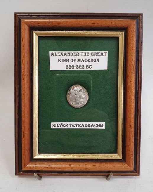 Silver tetradrachm, Alexander the Great, King of Macedon 3362 323BC, in framed case (worn)