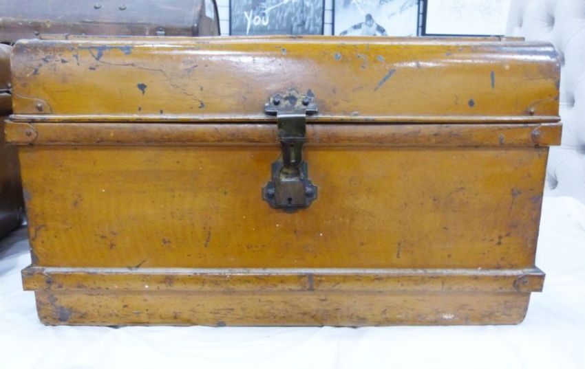 Vintage tin trunk, 70cm wide x 50cm deep x 41cm high