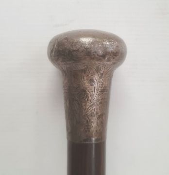 1920's silver-topped and wooden walking cane, London 1924, engraved decoration to handle, 86cm approx.