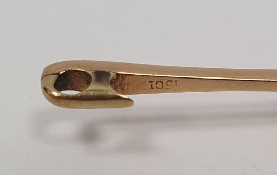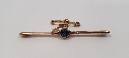 15ct gold and single blue stone set bar brooch, the circular blue stone 4mm in diameter approx. 3.5g in total