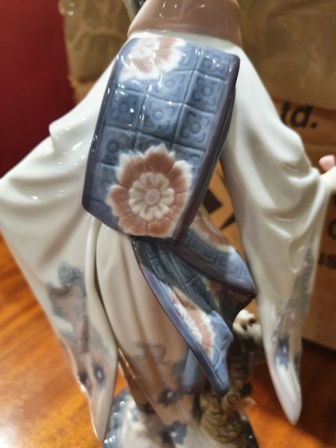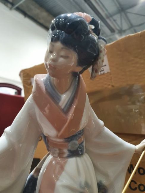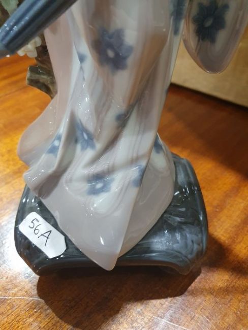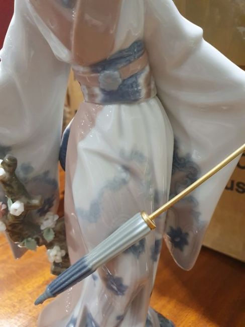 Lladro model of a lady with prunus blossom and an umbrella and a Franklin Mint kettle and teapot set