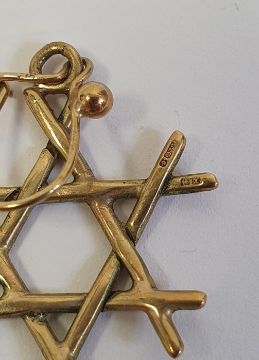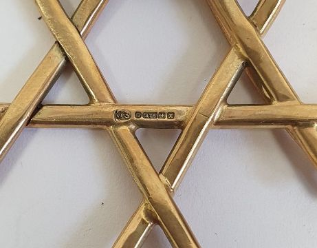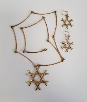 9ct gold necklace and earring suite, Birmingham 1972, maker OS, the necklace with stylised star pendant formed by crossed bars with shaped bar links, with matching drop earrings, approx. total weight 22g (3)