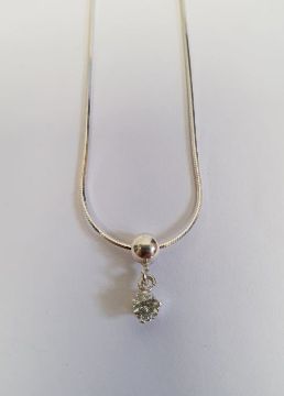 Solitaire diamond drop pendant, claw-set in silver mount, on fine chain, the stone approx 0.10ct