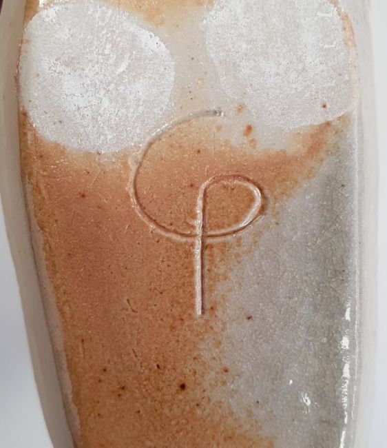 Two studio pottery vases decorated with sea shells on pale green ground (2)