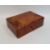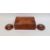 Modern burrwood box of rectangular form with fitted interior, 26cm long and a pair of matching tea light holders, 11cm diameter.