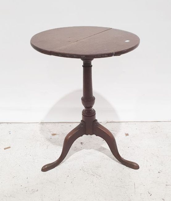 19th century oak occasional table, circular top on turned pedestal to three ogee supports, 52cm x 69cm