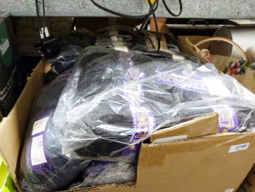 Three boxes of assorted textiles, linen and wool together with a Singer sewing machine and a quantity of tights