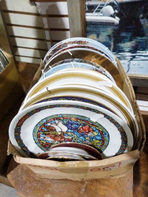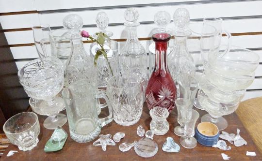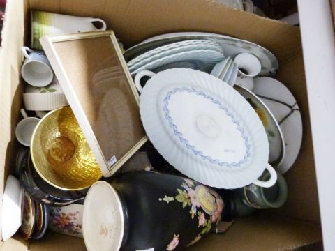 Nachtman cut glass decanter together with various china, glass and metalwares (3 boxes and a mirror)