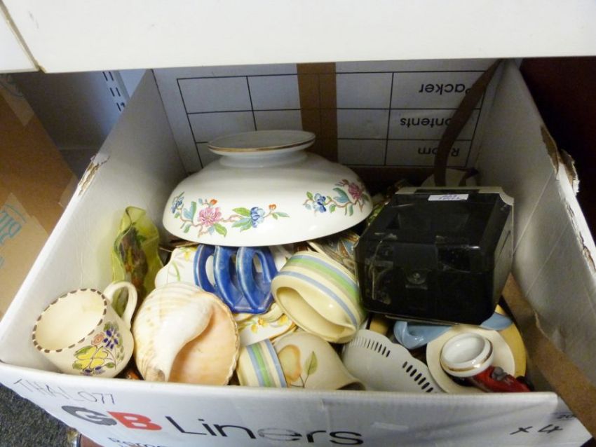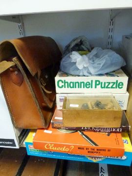 Aynsley Pembroke footed bowl, various copper and brass flagons, board games to include Whicker's World, Cluedo, Coronation Street game together with further household, china and glass items (4 boxes)