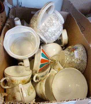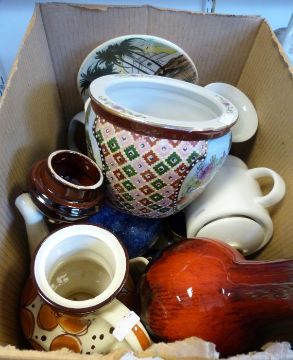 West German style ceramic vase, a Sadler circus teapot together with assorted china and household items (3 boxes)