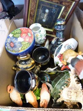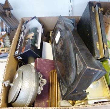 Arts & Crafts style metal box together with assorted dinnerwares and household items