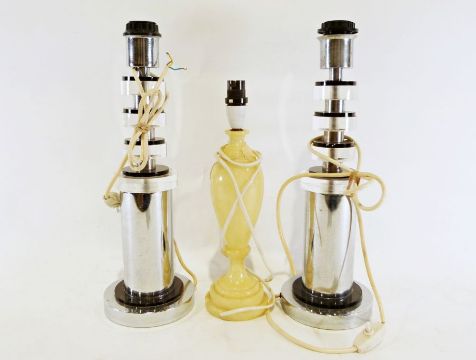 Pair of 'Ceva' chrome table lamps and an alabaster table lamp (3)