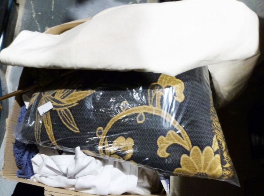Ten boxes and two holdalls of assorted textiles, linen, duvet covers, etc.
