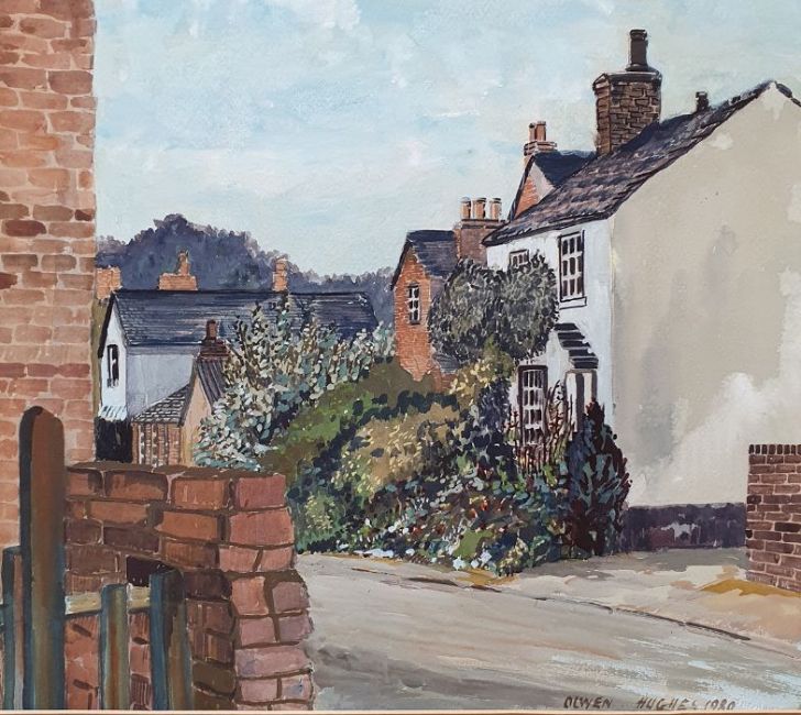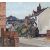 Village scene, unframed, together with a