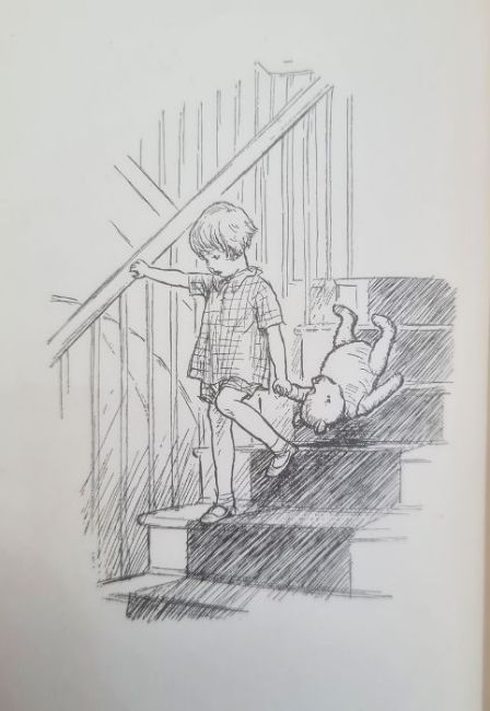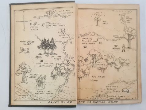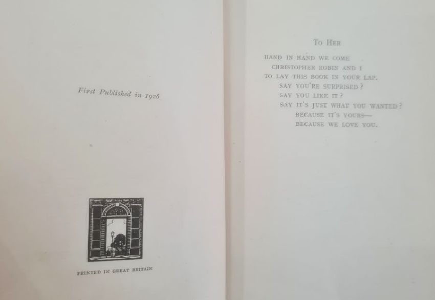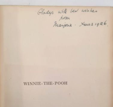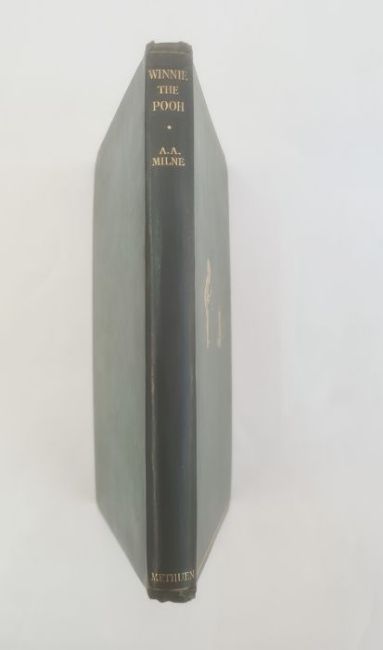 Milne, A A "Winnie the Pooh", with decorations by Ernest H Shepard, Methuen & Co 1926, illustrations throughout, back hinge cracked, some toning to pages, pictorial ep, dedication inscribed 1926 on half-title, green cloth with gilt pictorial decorations to front board and gilt titles, all corners rather bumped