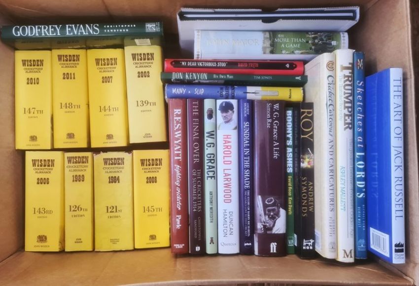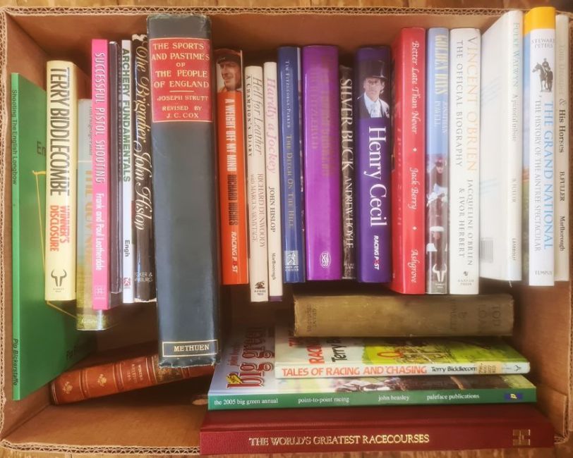 Horse racing and cricketing interestLuckman, A Dick "Todd Sloan by Himself", Grant Richards 1915, limited edition of 200 copies, this is no.70, signed by Todd Sloan, photographic frontis with tissue guard, other plates, front hinge cracked, green cloth, pictorial front board, black titlesStrutt, Joseph and J C Cox (revised by) "The Sports and Pastimes of the People of England", Methuen, n.d., frontis portrait, tissue guard, folio cloth with pastedowns title to backstripBiddlecombe, Terry"Winners Disclosure"Knight, Henrietta"Best Mate, Chasing Gold", signed Henriette Knight, Terry Biddlecombe, Jim Lewis and Valerie Lewis (owners of Best Mate), djBland, Ernest (ed)"Flat Racing since 1900", Andrew Dakers Limited 1950, inscription on ffep, colour frontis, dj designed by Lionel EdwardsHenry Cecil, Arthur Fitzgerald, John Hislop, Richard Hughes, quantity of books on cricket to include Wisdens, W G Grace, R E S Wyatt, Harold Larwood, Godfrey Evans, etc (3 boxes)