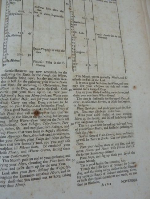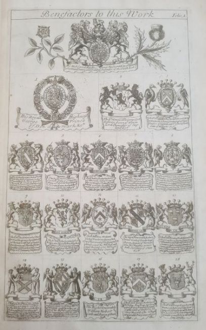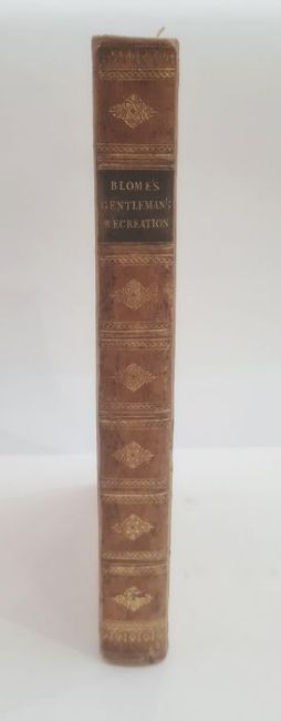 Blome, Richard "The Gentlemans Recreation. In two parts. The first being an encyclopaedy of the arts and sciences ... the second part, treats of horsemanship, hawking, hunting, fowling, fishing and agriculture, with a short treatise of cock fighting ... all of which are collected from the most authentic authors and the many gross errors therein corrected with great enlargements made by those well experienced in the said recreations and for the better explanation thereof great variety of useful sculptures as nets, traps, engines, etc are added for the taking of beasts, fowl and fish not hither to published by any, the whole illustrated engraved in copper relating to several subjects", printed by S Roycroft for Richard Blome, dwelling at the upper end of Dutchy-Lane, near Somerset-House in the Strand, 1686, red and black lettered tp, engraved frontis, dedication to 'The Most August James II ....', 10 plates of the benefactors to this work, two engraved plates before grammar part 1, one plate backed by paper, one plate small hole in the margin, 72 plates in all, Hern Hawking plate repaired margin bottom left, numerous woodcut illustrations and details throughout the text, bkpl for the Hon P Ashburnham inside front board, has been rebound, full leather and backstrip laid down, bookworm has been at the edge of the backstrip, speckled edges, gilt dentelles to the edge of the boards, 22cm x 27cm Condition ReportPlease see numerous more photographs , one plate has been laid down and repaired, small repairs to another two, ink spots, off setting from some woodcuts Approx 82 plates, there is no plate- frontis for the section Cockfighting. I do not know if there should be one. The text appears to be complete. Should there be a half title as there isnt one present.?PLease ring 01242 256363 if needing more detail