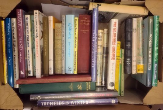 Quantity of volumes on field sports:-Bratby, Michael"Grey Goose", Geoffrey Bles 1939, photographic illustrations, turquoise cloth, dj price clipped, bkpl inside front boardKeith, E C & Thorburn, Archibald"A Countryman's Creed", Country Life 1938, colour frontis, illustrations, blue clothParker, Eric"The Elements of Shooting", The Field Press, colour frontis with tissue guardWilcock, Colin"The ABC of Shooting", The New Wild FowlerScott, Peter"Wild Geese and Eskimos", Country LifeGlazier, Philip"Hawk in Hand"Willcok"Landscape with Solitary Figure", illustrated by Brian Walker, Longmans 1966, dj not price clippedWentworth Day, J "Sporting Adventure", George Harrap 1937, illustrations, green cloth, blindstamped with gilt titles and other volumes (3 boxes)