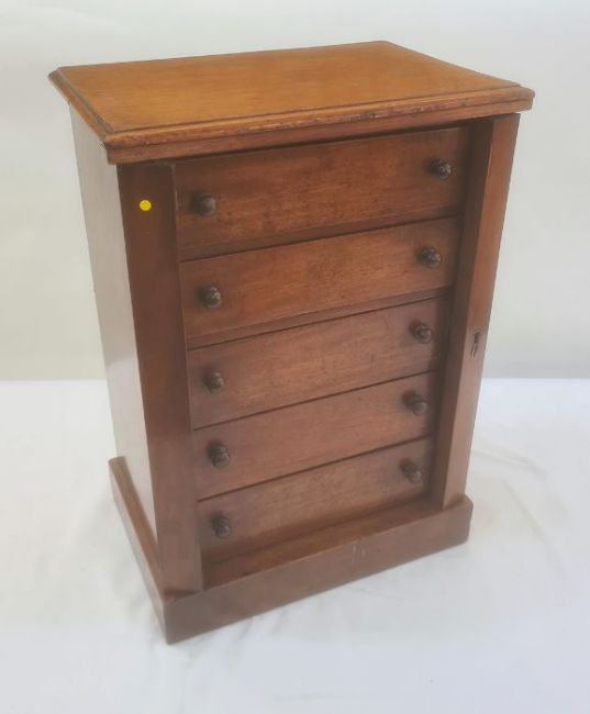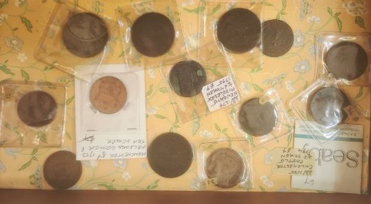 Large collection of 18th century tokens including pennies and half pennies, in various grades, from fine to very fine, some still in SEABY envelopes, comes with collectors handwritten notes and reference books, housed in Victorian mahogany collector's cabinet