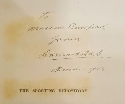 "British Sports and Sportsmen - Modern Flat Racing, Steeple Chasing, Point-to-Point Racing, Coursing and Greyhound Racing", London, Sports & Sportsmen Limited, limited edition of 1000 copies, this is numbered 704, large folio, marbled ep, gilt dentelles, full morocco with gilt titles, raised bands and armorial crest to front coverThe Gun at Home and Abroad - "British Deer & Ground Game, Dogs, Guns & Rifles", by J G Millais, W Baxendale, J E Harting, Capt W Coape Oates, Morris Portal, Hon T F Fremantle, London, The London & Counties Press Association 1913, 950 copies only, this numbered 584, colour plates with tissue guards, writing on the tissue guards listing the artists in pen, full morocco, vol 2, gilt rules and titles, t.e.g. folio"The Sporting Repository containing horse racing, hunting, coursing, shooting, archery, trotting and tandem matches, cocking, pedestrianism, pugilism ..." 2 vols, Keegan Paul, Trench Trubner 1904, limited edition of 50 copies, no 45, colour plates with tissue guards, offsetting to ffep, pencil inscription on ffep, quarter vellum with blue boards, gilt titlesQuarrel"The Worcestershire Hunt", Philips & Prober Ltd, Caxton Press 1929, photographic illustrations throughout, decorated ep, boards in blue and red, quarter velum, dj and two other related volumes (7)