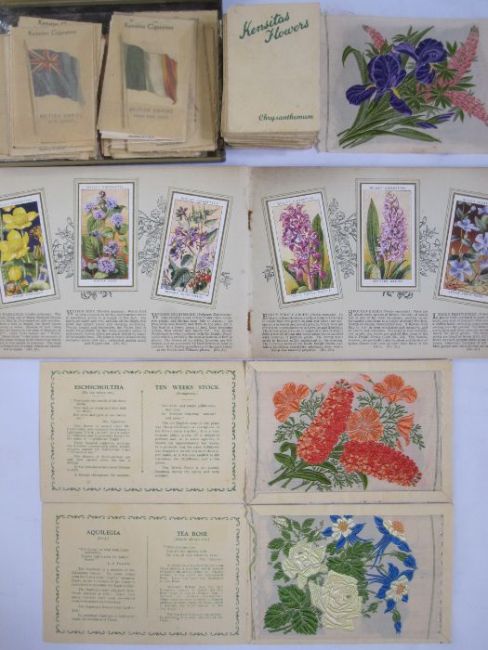 Quantity of Kensitas cigarettes silk 'British Empire' cards, Kensitas 'Flowers', an album of 'Wild Flowers' issued by Wills and 'Elizabeth Coronation June 1953', London Transport British Railways map and other commemorative items