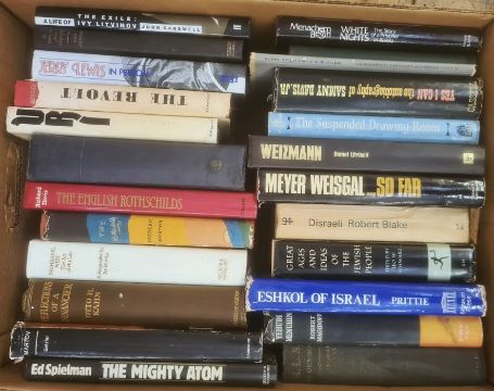 Jewish biography to include:- Dreyfus, Alfred"Five Years of My Life", Georges Newnes 1901Viertel, Salka "The Kindness of Strangers", Holt Rinehart and Winston 1969, dj Schwarz, Leo W (ed) "Great Ages and Ideas of the Jewish People"Begin, Menachem"White Nights, the Story of a Prisoner in Russia"Begin, Menachem"The Revolt, a Story of the Argun", published Jerusalem, n.d., djKahan, Otto H "Reflections of a Financier" and other titles (2 boxes)
