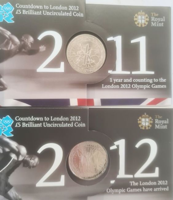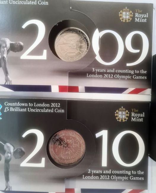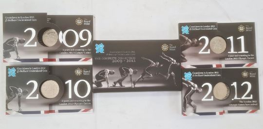 The complete set of the Countdown to London 2012 five pounds brilliant uncirculated coin collection