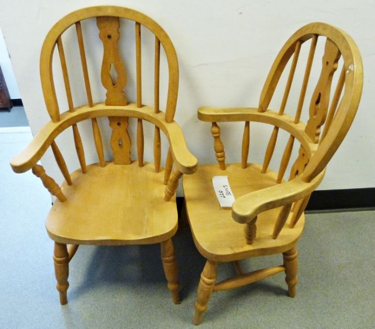 Pair of modern beech child's windsor-type chairs (2)