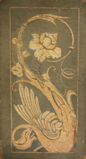 British school (mid 20th century)Watercolour "The Adoration", titled in pencil and signed with monogram, 28cm x 41cm (unframed) Watercolour and bodycolour"It's Not Funny", signed with monogram (unframed) Cork panel Painted with stylised floral and bird decoration, 32cm x 56cm (3)
