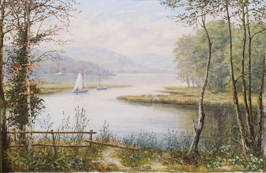 Suppers?Oil on canvasLake scene with sailboats, signed lower right together withAfter Paul JamesLimited edition printTigers, signed lower right and numbered 849/500 lower left and two further prints (4)