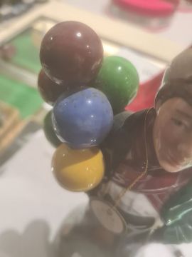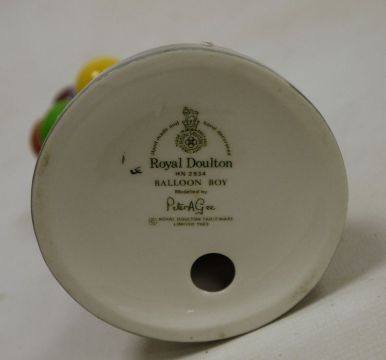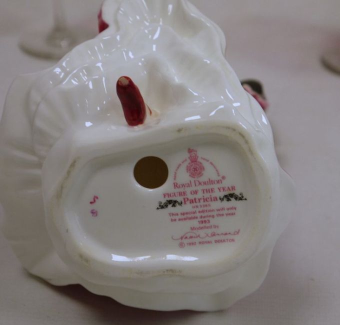 Royal Doulton 'Balloon Girl' HN2818, Royal Doulton 'Balloon Boy' HN2934, Royal Doulton 'Figure of the Year Patricia' HN3365 and two items of cranberry glass (5) Condition ReportThere is major obvious damage to the figures, there is slight loss to the colours in spots.