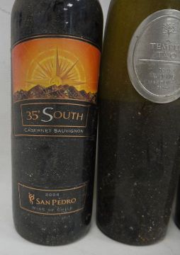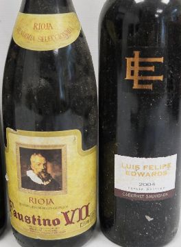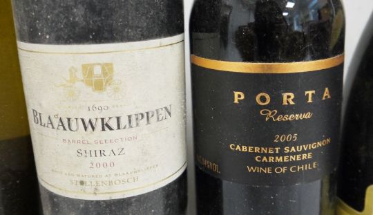 One bottle Blaauwklippen Shiraz 2000, one bottle Tempus Two 2005 Chardonnay, one bottle Rioja Faustino VII, one bottle Luis Felipe Edwards Cabernet Sauvignon 2004, one bottle 35° South Cabernet Sauvignon 2004, one bottle Porta Reserva 2005 Cabernet Sauvignon Carmenere (6)