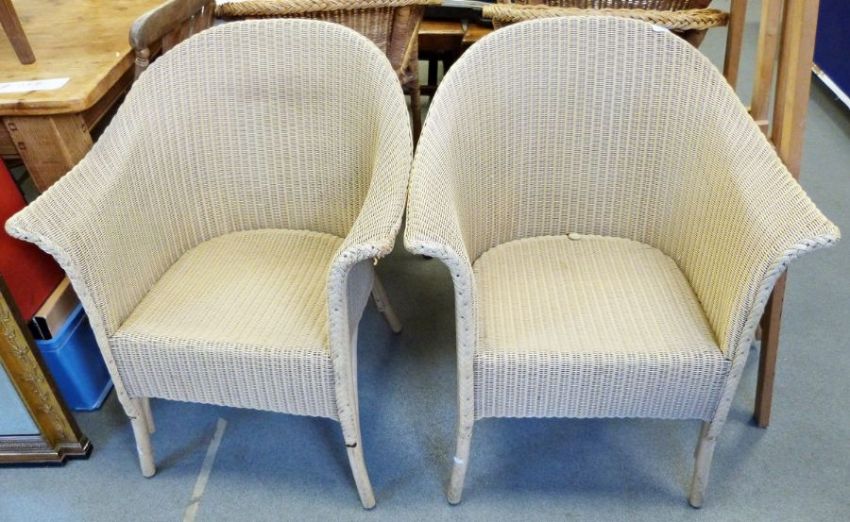 Pair of Lloyd Loom-style tub chairs finished in cream (2)