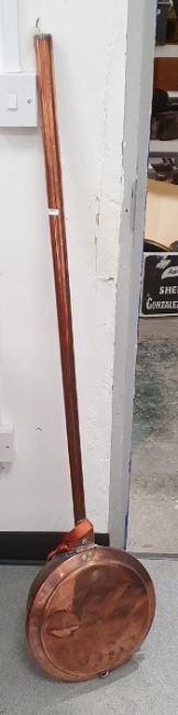 Copper bed warming pan, with tubular copper handle
