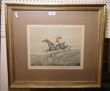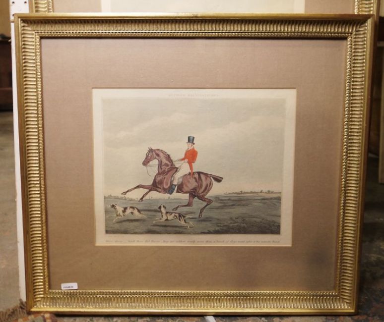 After H Alken Two hunting platesHunting Recollections - "By the Lord Harry My Chestnut Horse Can Almost Fly" and "Were Horse_Dash These Hot Horses - They are Seldom Worth More than a Bunch of Dog's Meat After a Ten Minute Burst", 24.5cm x 30cm (2)