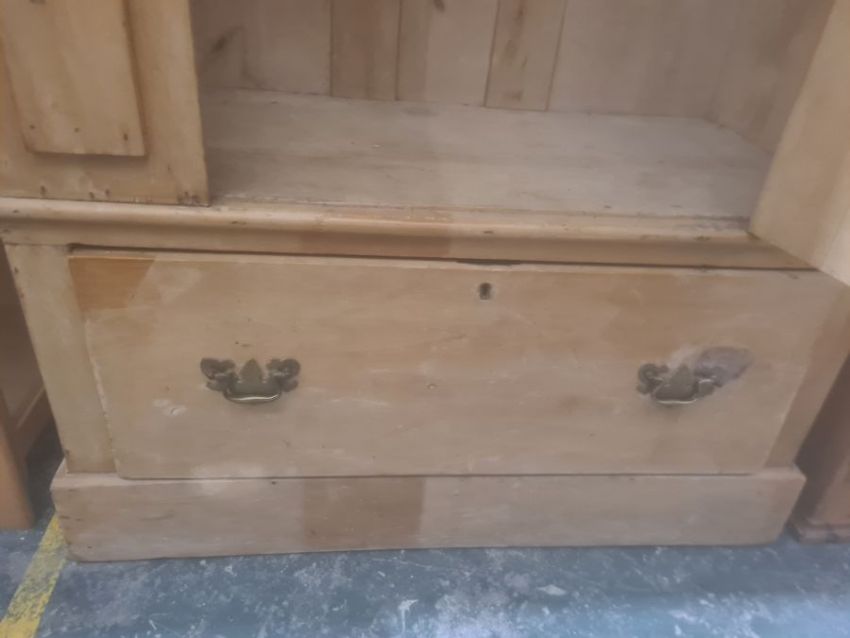 Vintage pine single-door wardrobe, the moulded cornice above the single door, single drawer under, on plinth base, 95.5cm x 193cmCondition ReportPlease see further images