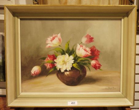S Flieyl Fua(?) (20th century school)Oil on canvasStudy of flowers in a vase, signed lower right, 29cm x 40cm
