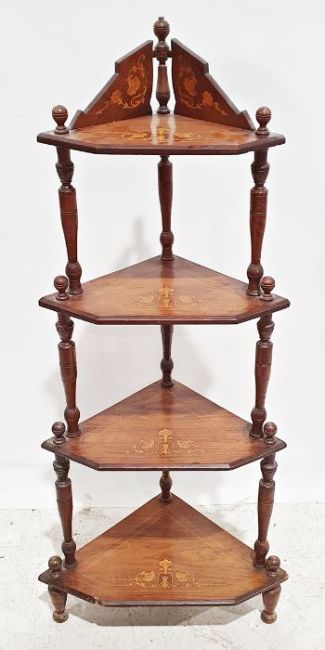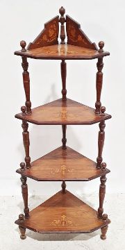 Two wall-hanging racks and a 19th century rosewood and satinwood banded four-tier corner whatnot (3)
