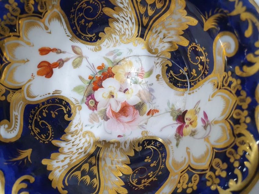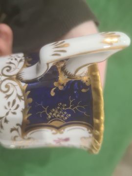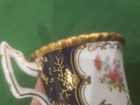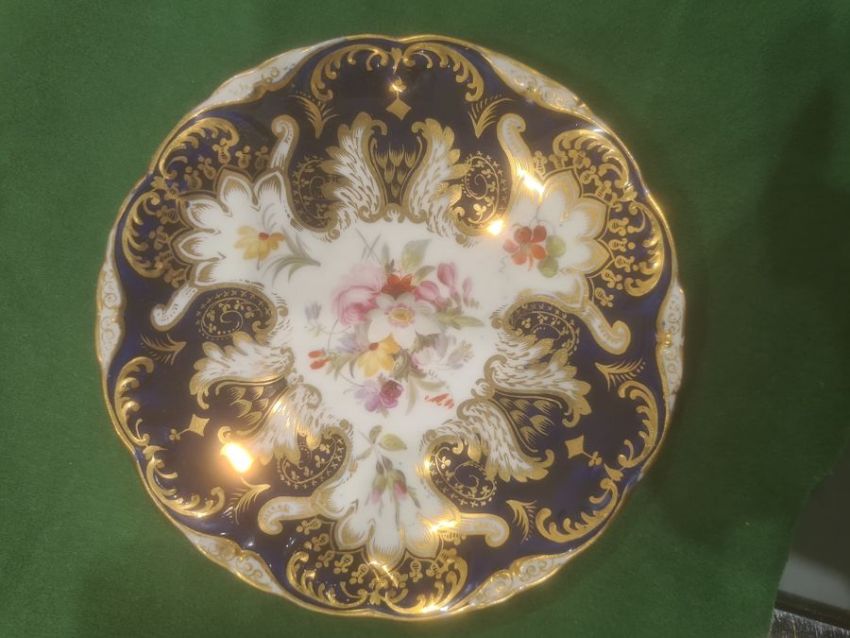 Coalport blue 'Batwing' pattern part dinner and tea service, numbered to reverse Y2665 (on some pieces) including seven cups and saucers, tea plates and other items Condition ReportSauce boat- Small amount of crazing to the top in spots as well as some wear to the gilt, hairline crack to one side,Jug- crazing to the white all over, spots of  fading to blue sectionCups- most have crazing to them and spots of fading near the handlesLarge cup- significant repairs done to base2 loose plates- small amount of wear to gilt as well as some crazingbowl- some crazinglarge dish- no obvious damageSaucers- one cracked, about half have some spots of crazingtea plates- crazing to one,Wear to gilt on most piecesSee attached images