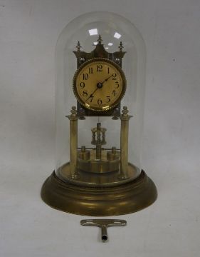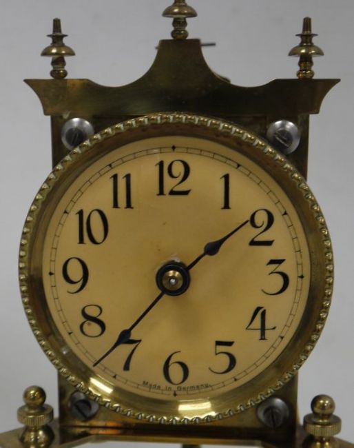 German dome-cased brass mantel clock with Arabic numerals to the dial