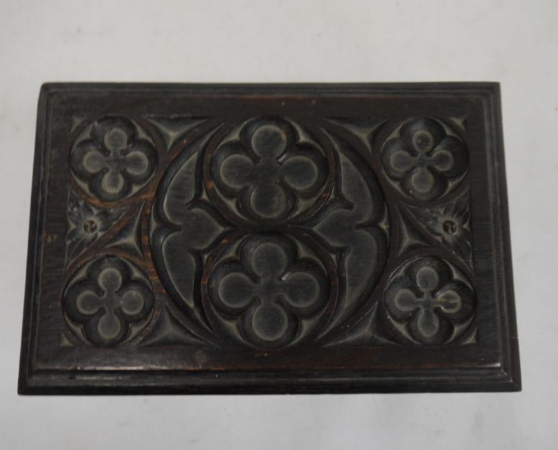 Early 20th century oak box with carved decorationCondition ReportHeight 13cmLength 25.5cmWidth 17.5cm