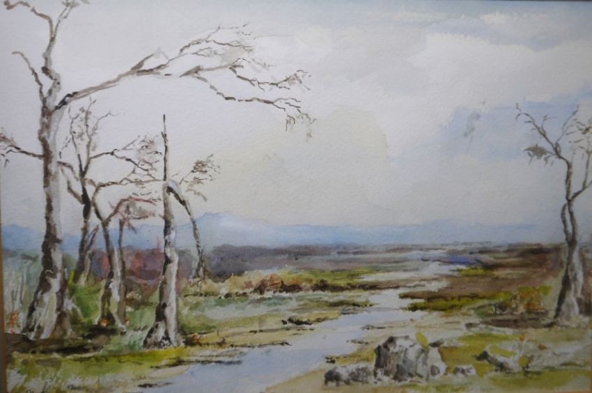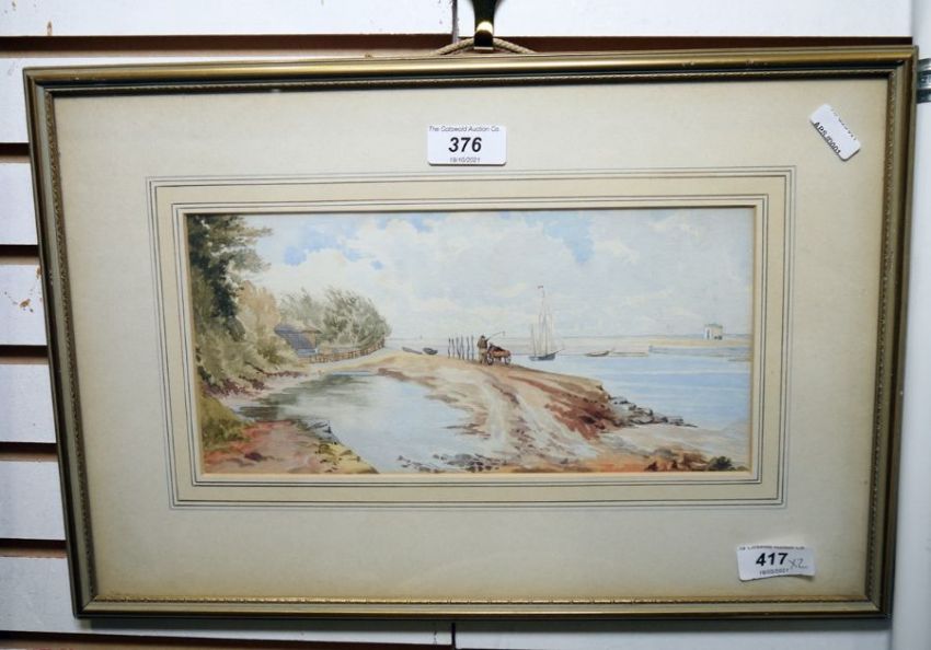 Early 20th century schoolwatercolourPony and trap with drover on beach, together with one further watercolour signed Irene Blett, landscape (2)