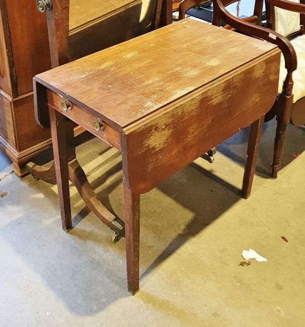 19th century mahogany cheval mirror, rectangular plate glass with two brass candleholders to the mahogany frame, on ogee feet capped with brass caps and castors and a sutherland table (2)