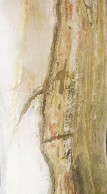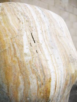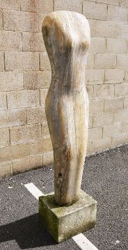 Attributed to Paul Vanstone (b.1967) variegated white polished stone sculpture of female torso, the whole raised on base, and approx 183cm tall (ARR)