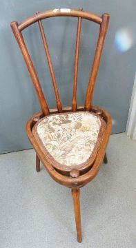Early 20th century Thonet chair in bentwood, the triangular shaped seat on three turned supports