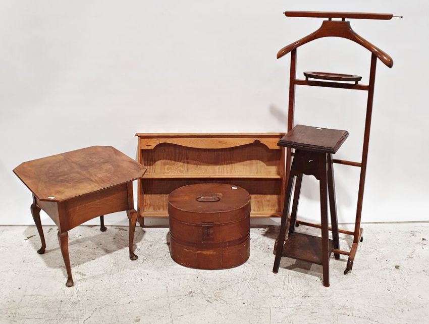 Various assorted items to include mirrors, walnut sewing table, hat box, aspidistra stand, etc (9)