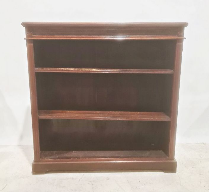 19th century walnut open bookcase with adjustable shelves, on plinth base, 84cm x 123.5cm x 32cm