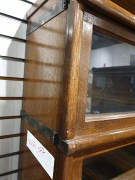 Globe Wernicke sectional bookcase consisting of three sections of five glass-fronted long cases and two sections of five-doored corner cases, each on bases, the top sections with painted decoration 'Globe Wernicke, Always Complete but Never Finished, Made in England'Condition ReportBookcase section (Five longcases) Approx. dimensions: Width 80.5cm x Height 178cm x Depth 29cmWear throughout including damaged longcase door. See pictures.