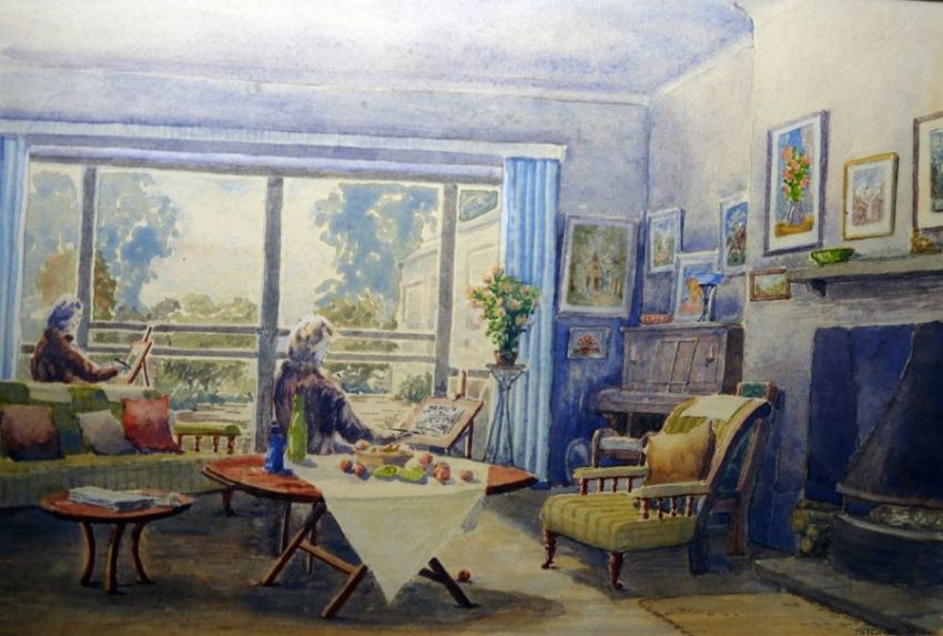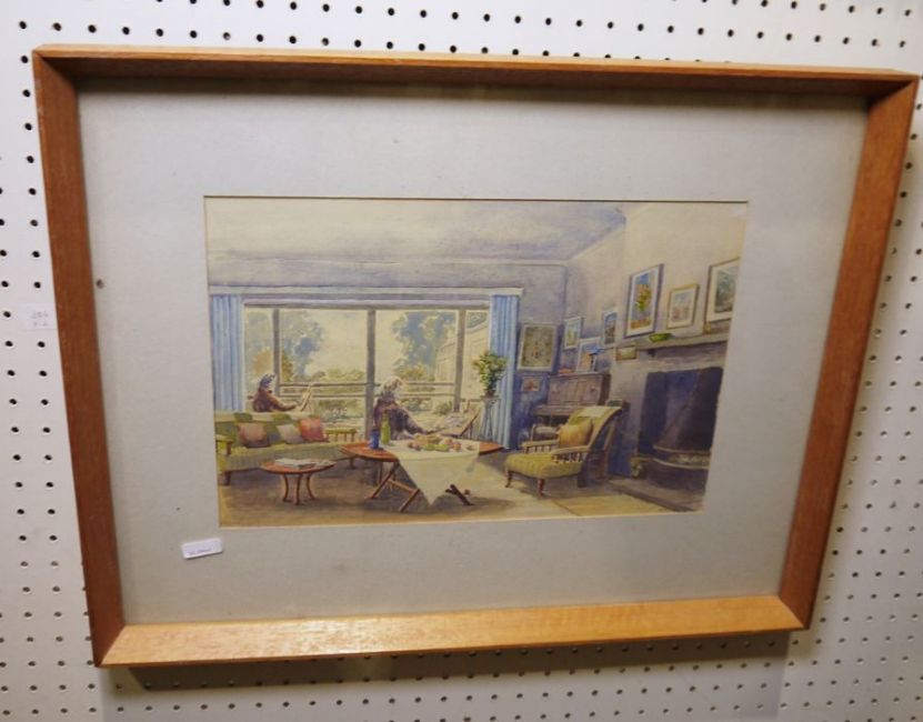 J Nash (19th century) Watercolour drawingVenetian waterways with figures and vessels, signed lower right Stone (20th century) Watercolour Interior with artists at their easels, signed and dated '84, 22cm x 32cm (2) Condition ReportVenetian Waterways - Pale brown foxing/damp damage throughout picture. One larger brown spot and several other smaller ones. Extensive damage to frame especailly at corners.Stone - Genearl war and some minor staining to mount.
