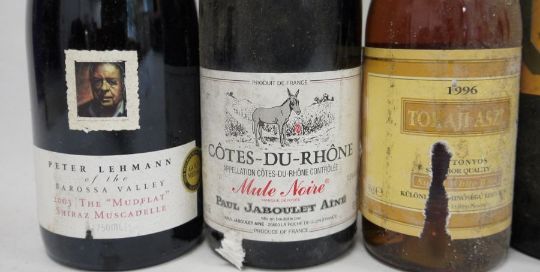 One bottle La Croix de Beaucaillou Saint-Julien 1999, one bottle Peter Lehmann Barossa Valley 2003 'Mudflat` Shiraz Muscadelle, one bottle Bardolino 1999 Bertani, one bottle Moscatel des Valencia, one bottle Tokaji Aszu 1996 (50cl), two bottles Cotes-du-Rhone Mule Noire 2001 (7)